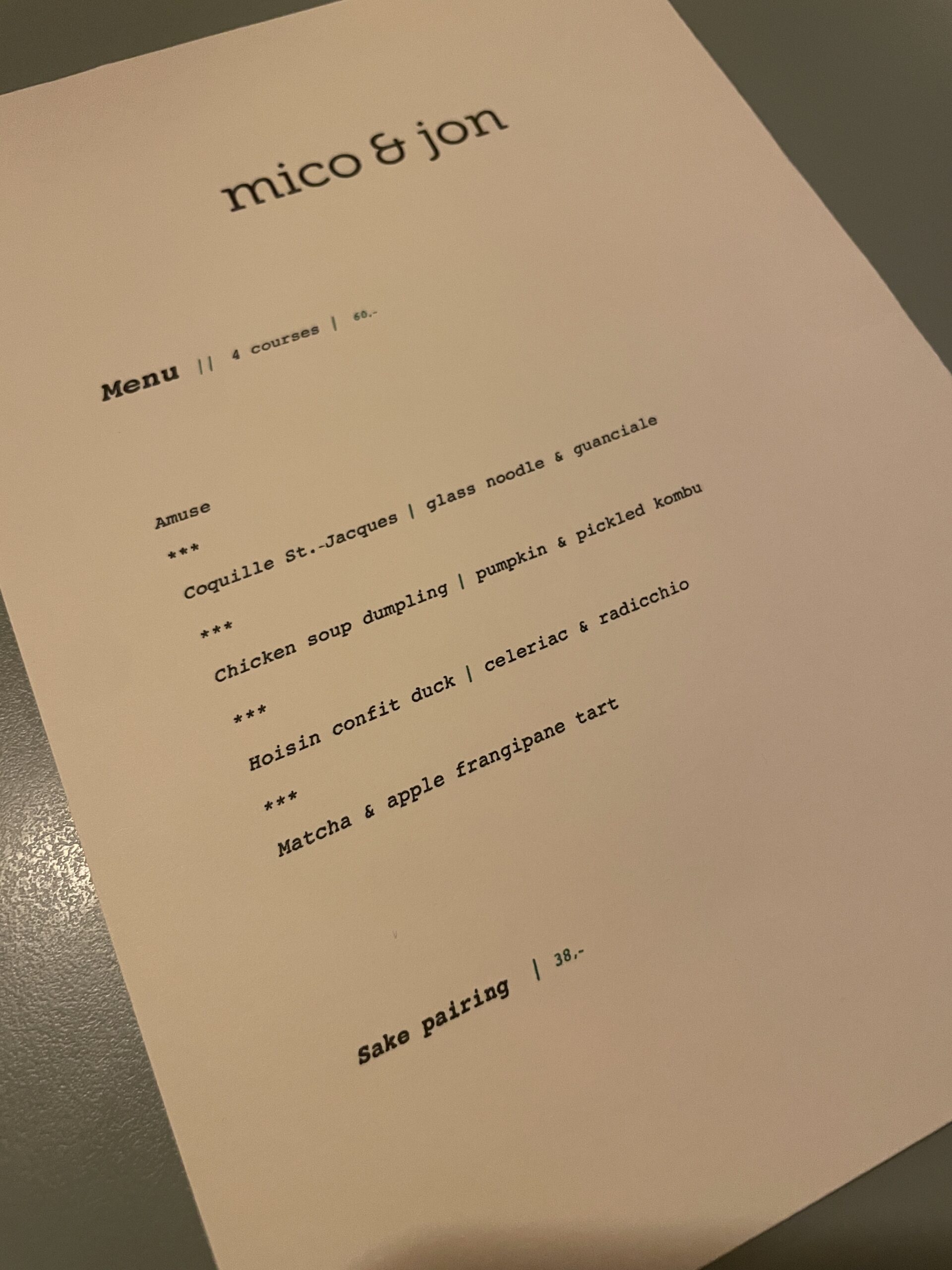 Update: Mico & Jon is nu enkel nog open voor à la carte lunch.